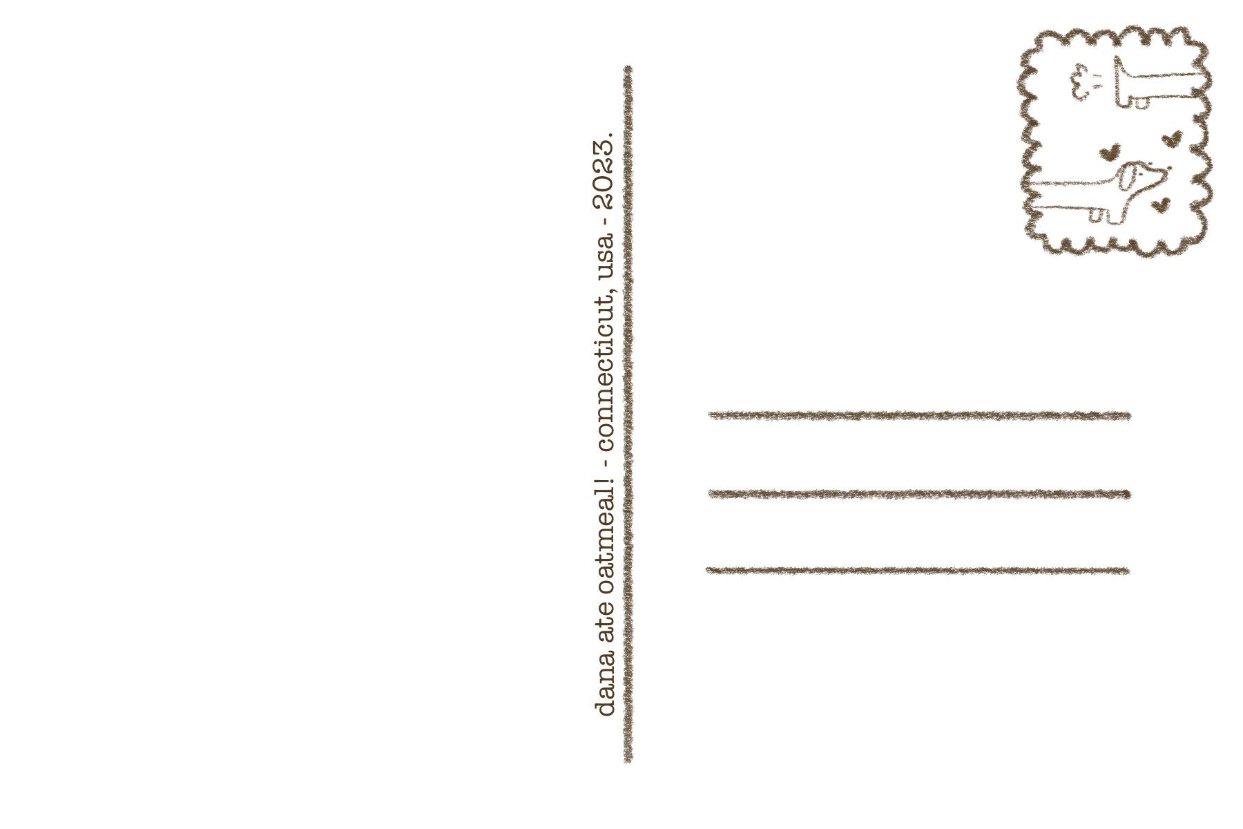 4” x 6” postcard with drawings of cats on the front, blank on the back for your own message.