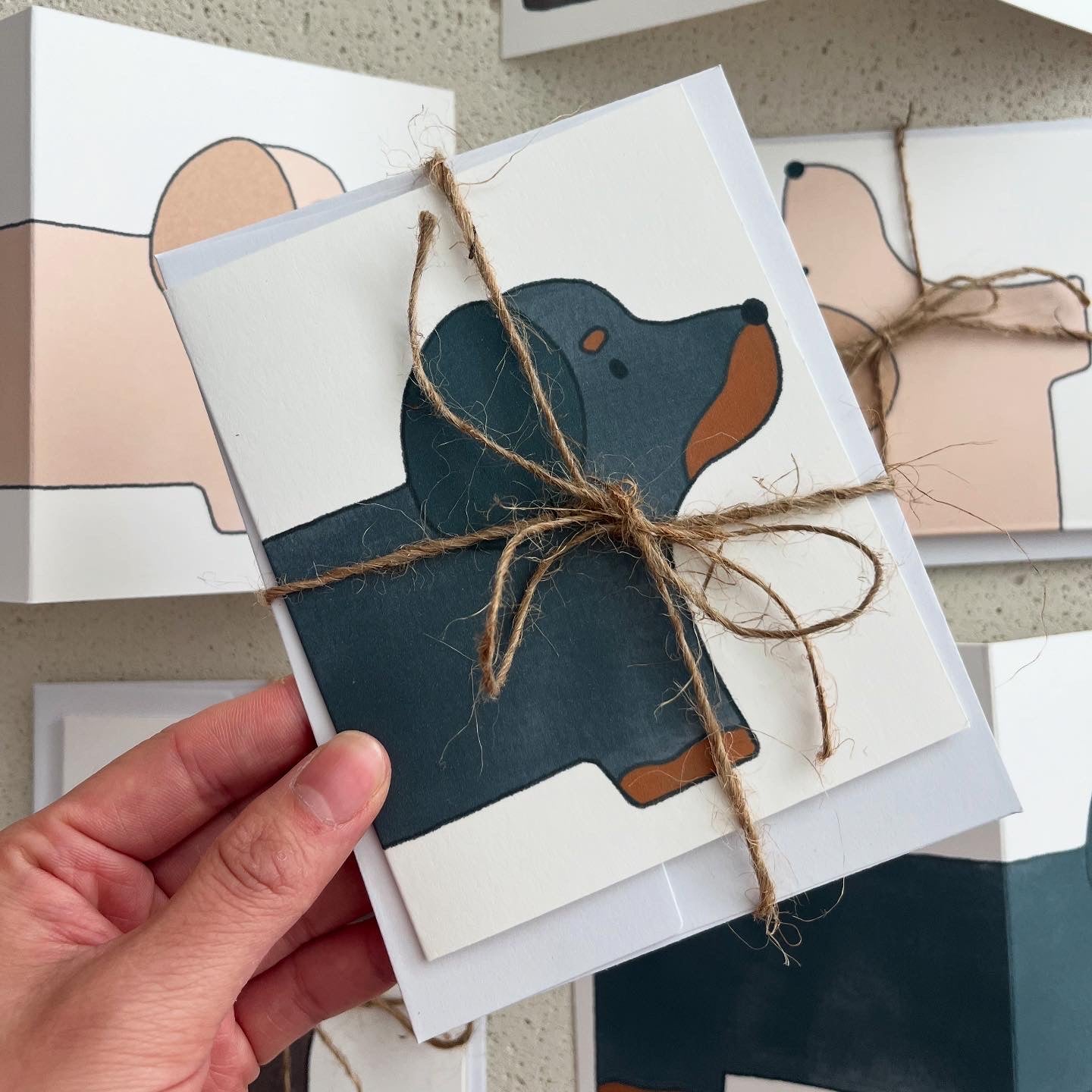 A2 size greeting card featuring a sweet dachshund head on the front, booty on the back!